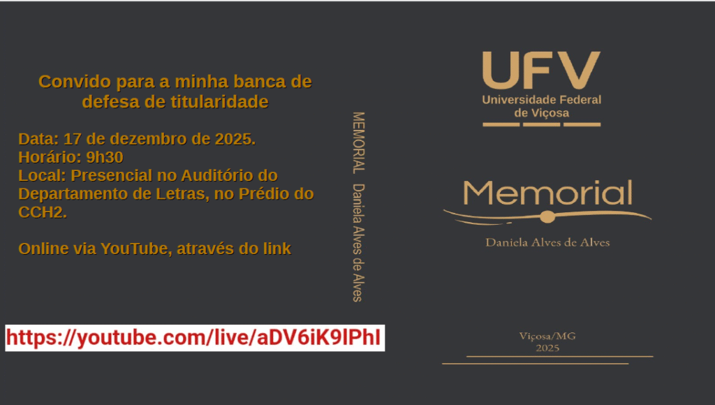 A Defesa do Memorial será realizada em formato híbrido, no dia 17 de Dezembro de 2025, às 9h30, no Link: https://youtube.com/live/aDV6iK9lPhI e presencial no Prédio CCH2, Campus UFV, Viçosa, Minas Gerais.